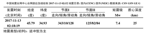 表1. 伊朗-伊拉克边界7.8级地震基本概况 表1. 伊朗-伊拉克边界7.8级地震基本概况