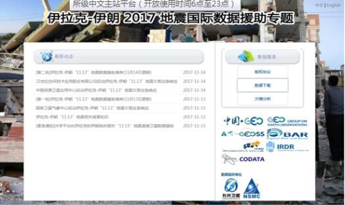 伊拉克-伊朗2017地震国际数据援助专题网站已于14日15时开通,全球用户可以通过中文或英文门户来免费下载相关数据。共享平台会继续对相关区域进行密切关注,收集灾区有效遥感卫星数据,及时为抗震救灾工作提供数据支持服务。所有数据和灾情信息都免费向全球的科学家和减灾机构开放。该响应机制是我国基于GEO框架创立的新型灾害数据响应机制,作为对于政府间减灾数据合作机制的补充,已经在2016年新西兰地震和2017年墨西哥地震期间发挥了重大作用,得到国际社会的高度评价和重视。
