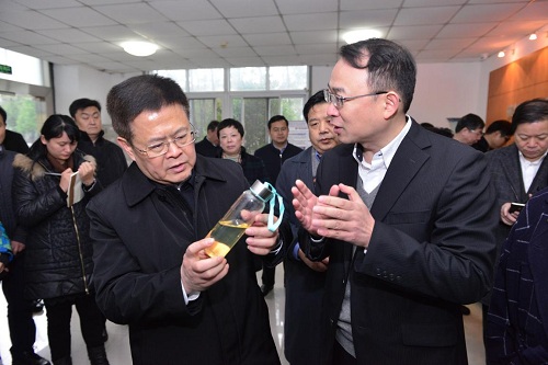 在新材料初创产业园,郑栅洁一行参观了宁波中科银亿新材料有限公司、宁波晨鑫维克工业科技有限公司、中科毕普拉斯新材料科技有限公司、宁波富理电池材料科技有限公司和宁波柔碳电子科技有限公司,详细了解了石墨烯重防腐涂料、特种真空设备及涂层材料、亚纳米软磁合金及无线充电材料、长续航动力锂电池正负极材料、柔性石墨烯薄膜材料等高新技术的产业化发展情况,就技术和产品的先进程度、产业化进展和市场前景等情况和科研人员进行了充分的交流,高度赞赏了宁波材料所坚持科技成果能落地、落好地、结出果的理念和举措,并希望将来能培育出更多具有核心竞争力的高科技企业,推动地方经济转型发展。
