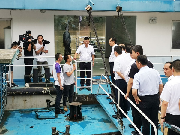 7月16日,农业农村部部长韩长赋一行调研赤水河禁捕退捕工作,期间,考察了中国科学院水生生物研究所位于赤水市渔政码头的鱼类资源监测点。