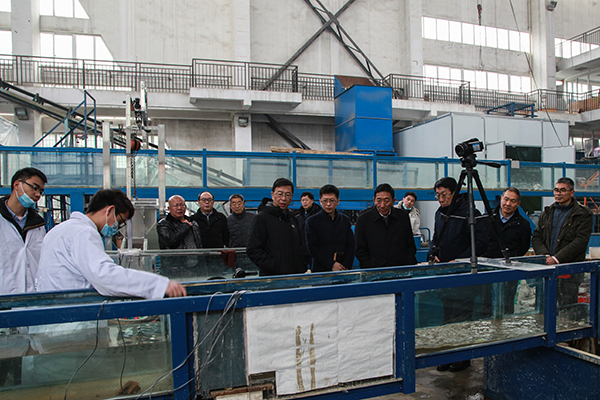 在山地灾害实验模拟大厅观摩堰塞湖溃决实验