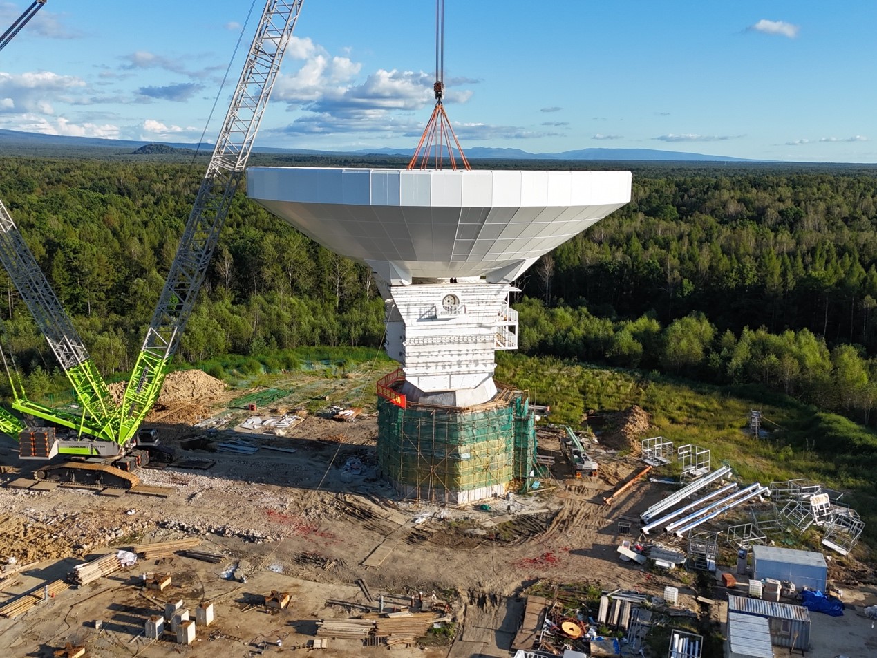 长白山40米射电望远镜天线主反射体完成吊装