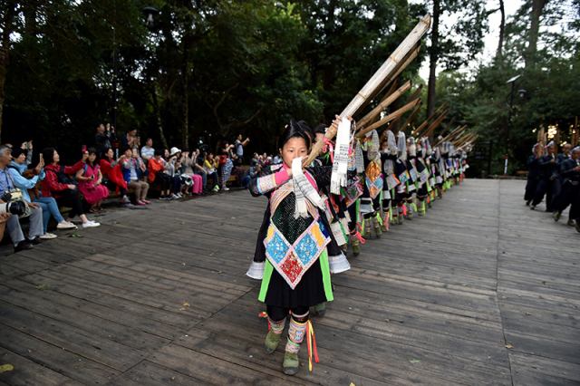游客在从江县芭沙村观看苗族传统舞蹈表演,这里被国家旅游局命名为“全国农业旅游示范点”(9月20日摄)。