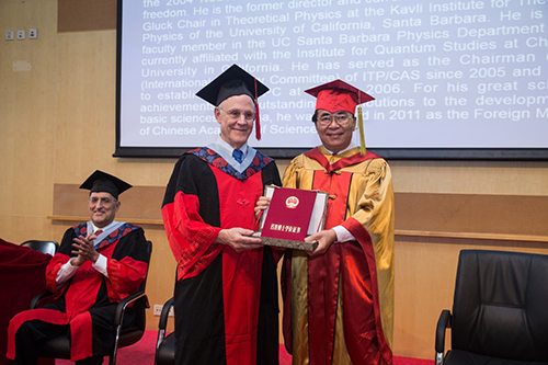 白春礼向戴维•格罗斯颁发国科大名誉博士证书
