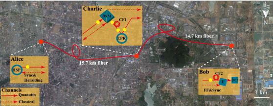 潘建伟小组首先和清华大学合作开发了适合光纤网络传输的时间相位纠缠光子源,然后通过发展皮秒级的远程光同步技术和使用光纤布拉格光栅进行窄带滤波,成功地解决了两个独立光子源之间的同步和干涉问题;接着开发了针对远距离光纤所造成的延迟和偏振涨落以及实验系统的稳定性等问题的主动反馈系统;最后利用中科院上海微系统所开发的超导纳米线单光子探测器,在合肥量子城域通信网络的30公里链路上实现了满足上述三要素的量子隐形传态实验。同日,《自然-光子学》也在线发表了加拿大Wolfgang Tittel小组在Calgary的光纤网络中利用独立源的量子隐形传态实验结果(无预先纠缠分发和前置反馈)。