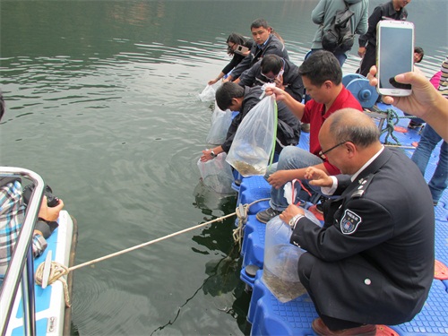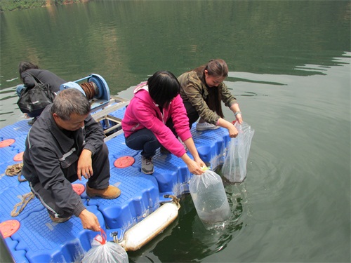9月21日中午,中国科学院昆明动物研究所杨君兴课题组将研究繁育的6万余尾滇池金线鲃苗种又一次放归到云南省沾益县德泽乡德泽水库库区里。