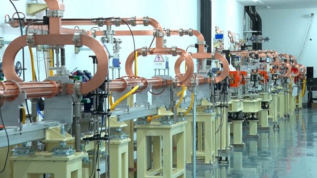 9月24日,由国家自然科学基金委资助的基于可调极紫外相干光源的综合实验装置的主体——大连相干光源的安装工程全部完成。当天,在经过相关专家严格的系统安装工程验收之后,项目专家在晚上21点30分钟开始了自由电子激光放大器出光调试,整个调试过程非常顺利,22点50分,超过300兆伏能量的高品质电子束流终于依次通过自由电子激光放大器的全部元件,总长18米的波荡器阵列发出了第一束极紫外光。