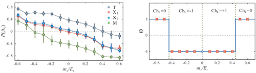 测量到的高对称点自旋态分布以及对应的能带陈省身拓扑数与理论计算相符
