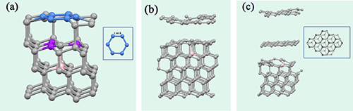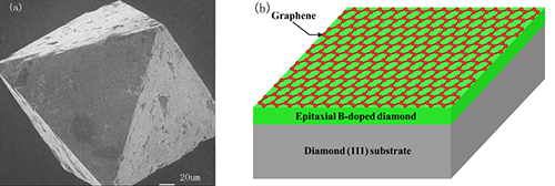最近,中国科学院物理研究所/北京凝聚态物理国家实验室(筹)微加工实验室研究员顾长志及李无瑕、李俊杰等人与量子科学模拟中心研究员徐力方、中国人民大学副教授徐靖和美国伦斯勒理工学院教授张绳百合作,首先从材料设计入手,在理论上预言了金刚石(111)表面在B原子的诱导下可以实现金刚石结构向石墨烯结构的相转变,之后,实验验证了单晶金刚石(111)表面在B掺杂的条件下可以自组织形成高质量的石墨烯,并且层数可控。