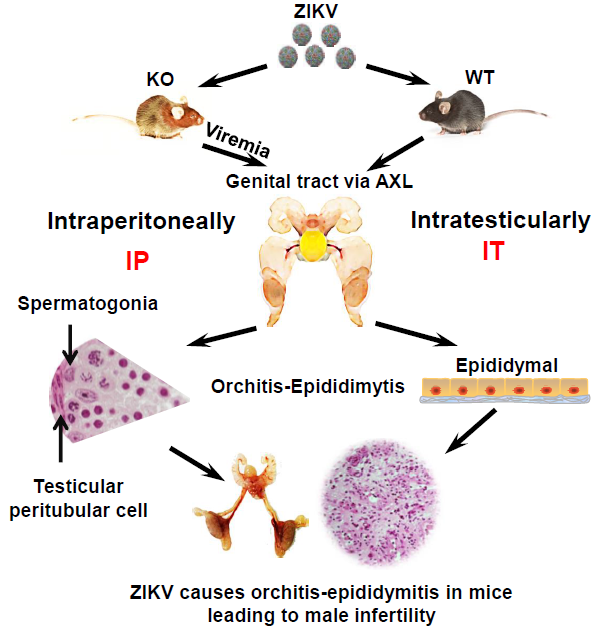 图:寨卡病毒感染小鼠引起睾丸炎/附睾炎,并最终导致雄性不育