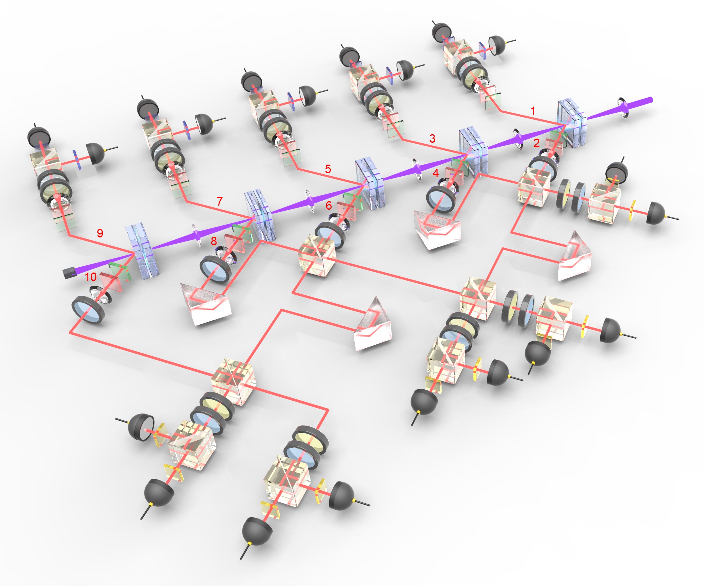 2012年,潘建伟小组首次实现了八光子纠缠,并成功将该技术应用于拓扑量子纠错和百公里量子隐形传态实验,相关成果入选了《自然》杂志年度十大科技亮点。之后,对十光子纠缠的操纵就自然地成为了量子信息领域的下一个重大目标。通过多年的探索,潘建伟小组利用两种不同的技术途径制备了收集效率、保真度和光子全同性这三个综合性能国际最优的脉冲纠缠光子源,并在此基础上,实现了十光子纯纠缠和可提纯纠缠态的实验制备和严格验证。这一成果将可应用于大尺度量子信息技术,表明我国在国际上继续引领多光子纠缠和干涉度量的研究。