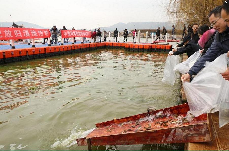 12月22日,由昆明市滇池管理局主办的“2016中央渔业资源保护增殖放流——滇池金线鲃”在美丽滇池东岸,七彩云南古滇名城湿地公园举行。中国科学院昆明动物研究所、云南省水产技术推广站、丰泽园公司等技术单位,昆明电视台、都市时报等新闻媒体和其他社会团体及个人约300人参加活动。