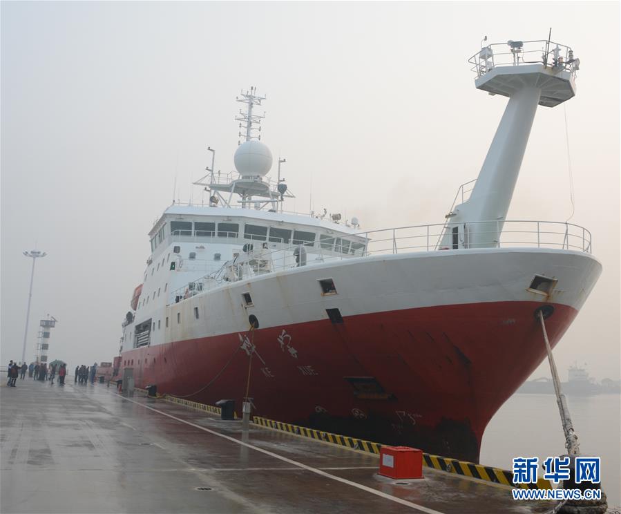 “科学”号返回位于青岛西海岸新区的母港(2017年1月2日摄)。新华社记者张旭东摄