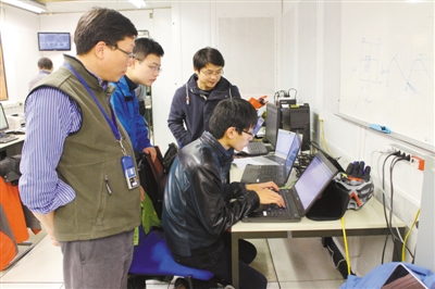 “悟空”团队在编写分析软件,左一为总负责人常进。中科院紫金山天文台供图