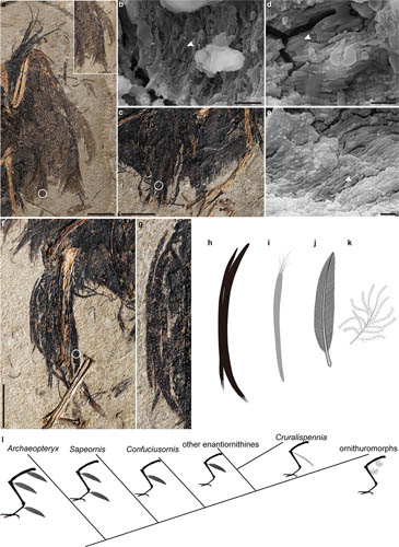 多齿胫羽鸟羽毛和色素体、胫跗骨羽毛复原以及早期鸟类后肢羽毛演化(王敏供图)