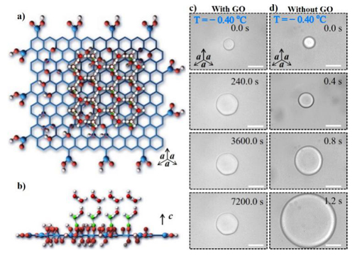 图1 氧化石墨烯上含氧基团的特殊排列结构与冰晶形成的氢键并能有效抑制冰晶生长和修饰冰晶形貌