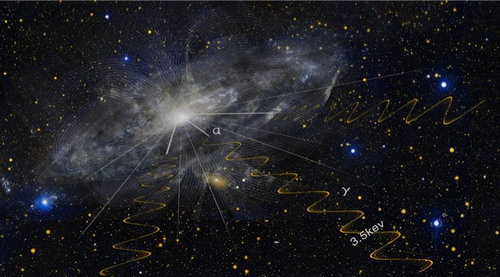 图1:轴子与漩涡星系磁场相互作用转化为3.5keV光子。图片来源:麻钰薇 中国国家天文杂志