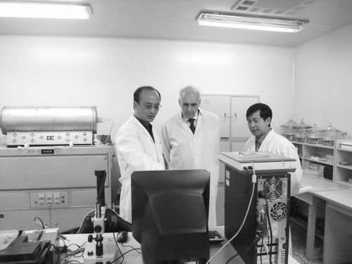 诺贝尔奖获得者、俄罗斯科学院院士阿尔费罗夫(中)来实验室交流参观。