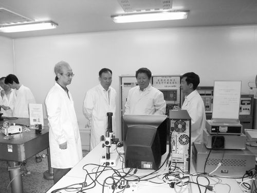 科技部原副部长曹健林(右二)到实验室参观垂直腔面发射激光列阵成果。图片均由长春光机所供图