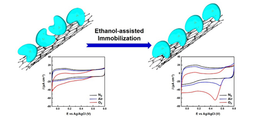 图2 乙醇调控漆酶在碳纳米管表面的取向和电极对于氧气的生物电化学催化还原性能