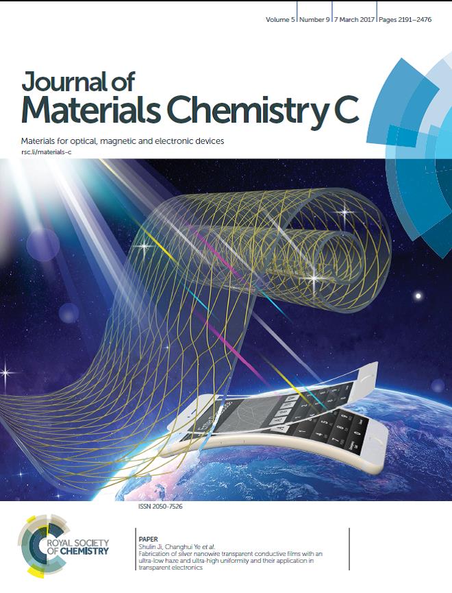 近期,中国科学院合肥物质科学研究院固体物理研究所微纳技术与器件研究室研究员叶长辉团队在高品质银纳米线透明导电薄膜研究方面取得系列进展,相关结果分别发表在ACS Appl. Mater. Interfaces、J. Mater. Chem. C (该文章被选为J. Mater. Chem. C 杂志的封面论文和2017热点论文)、CrystEngComm上,并申请了国家发明专利两项。