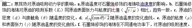 这项研究开创了浮油吸附材料设计的新路径,解决了以往多孔疏水亲油材料对高粘度浮油吸附速度慢的难题,提出的界面加热降低原油粘度的原创技术在石油化工业中的油水分离领域也有着广泛的应用前景。该研究提出的可加热经石墨烯功能化后的海绵组装体材料,经优化材料和结构可进一步降低成本和电能消耗,有望在今后应对海上原油泄漏事故处置中获得广泛的应用。