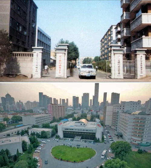 上图为上世纪80年代沈阳自动化研究所的外观图,下图为2016年沈阳自动化所航拍图。(沈阳自动化所提供)