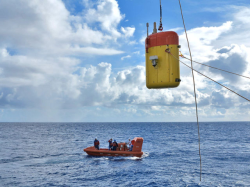 2016年7月18日,海斗自主遥控水下机器人在西太平洋进行下潜实验。(沈阳自动化所提供)