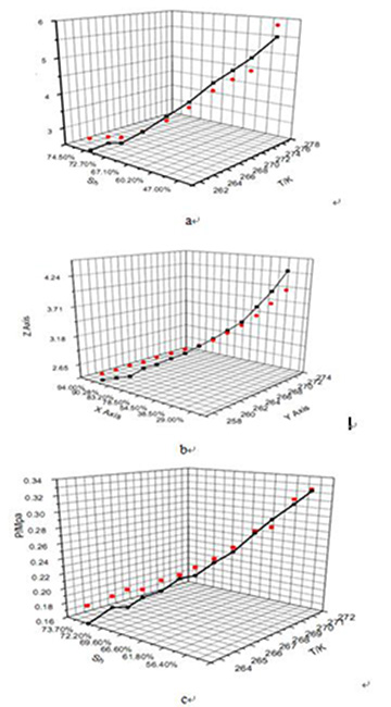 图3. 不同沉积物中水合物P-T-Sh三维相平衡曲线