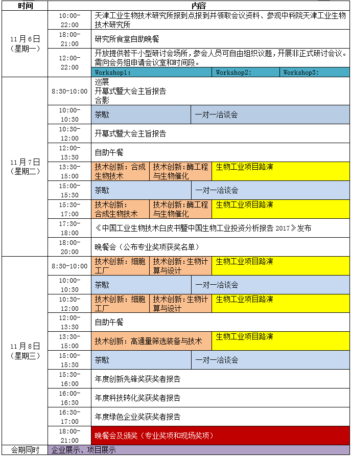 “第九届中国工业生物技术发展高峰论坛暨第二届中国生物工业投资大会”将组织“技术创新”和“项目路演”、“企业展览”三大板块内容,着重探讨工业生物技术领域“合成生物技术”、“酶工程与生物催化”、“细胞工厂”、“生物计算与设计”、“高通量筛选装备与技术”等议题,并甄选处于不同阶段的优秀生物工业项目进行路演,发布《中国工业生物技术白皮书暨中国生物工业投资分析报告2017》,还将设立“年度创新先锋奖”、“年度科技转化奖”及“年度绿色企业奖”等奖项,同时开展小组讨论、一对一洽谈等活动。大会将采取多种组织形式,加强互动交流,欢迎在线注册报名参会!