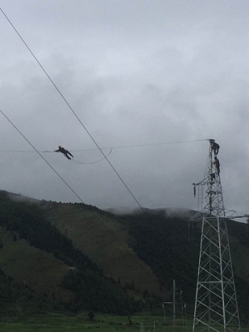 由于输电线路高程跨度很大,从海拔3800米的开关站到海拔4400米的变电站,线路上多处路段远离道路,因此只能靠马驮人扛把设备和混凝土运到每一个机塔施工点。从2016年8月开工到现在(其中2016年11月到2017年3月不能施工),终于实现观测基地通电,为国家投资工程提供了基本电力保障。