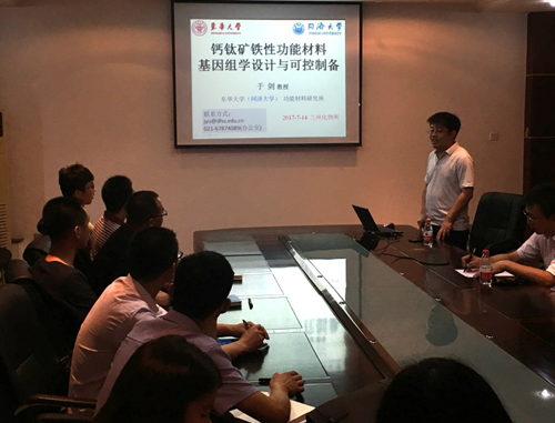 7月14日上午,应中国科学院青年创新促进会兰州化学物理研究所小组邀请,东华大学教授于剑到兰州化物所交流访问,并作了题为“功能材料基因组学设计与可控制备”的报告。