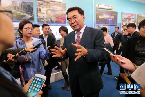 10月17日,中科院院长白春礼在“砥砺奋进的五年”大型成就展上接受采访。当日,中科院学部主席团组织部分院士到北京展览馆集体观看“砥砺奋进的五年”大型成就展。 新华社记者 张玉薇 摄