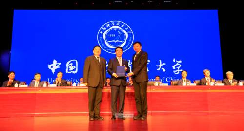 中国科大常务副校长潘建伟代表教师发言。中科院办公厅、前沿科学与教育局相关负责人参加典礼。