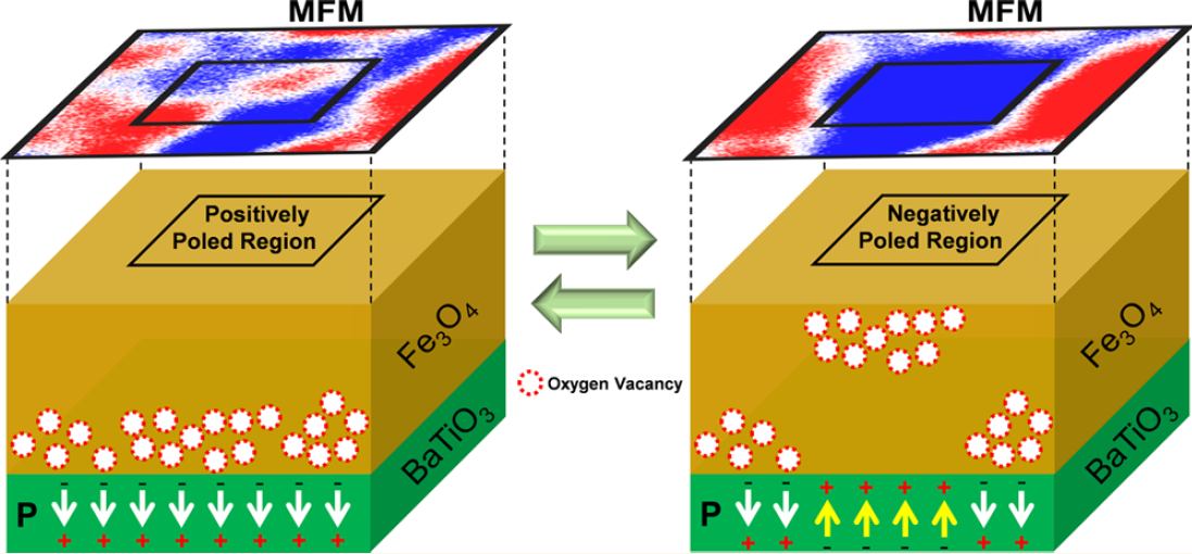 利用BaTiO3的极化翻转控制Fe3O4中氧空位的分布,从而实现Fe3O4中磁矩翻转