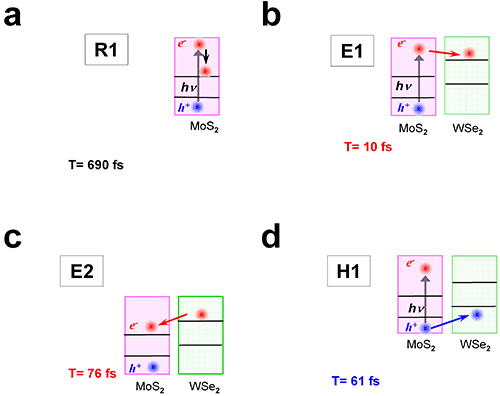 图1. 二维材料异质结中光激发诱导载流子的不同弛豫过程。