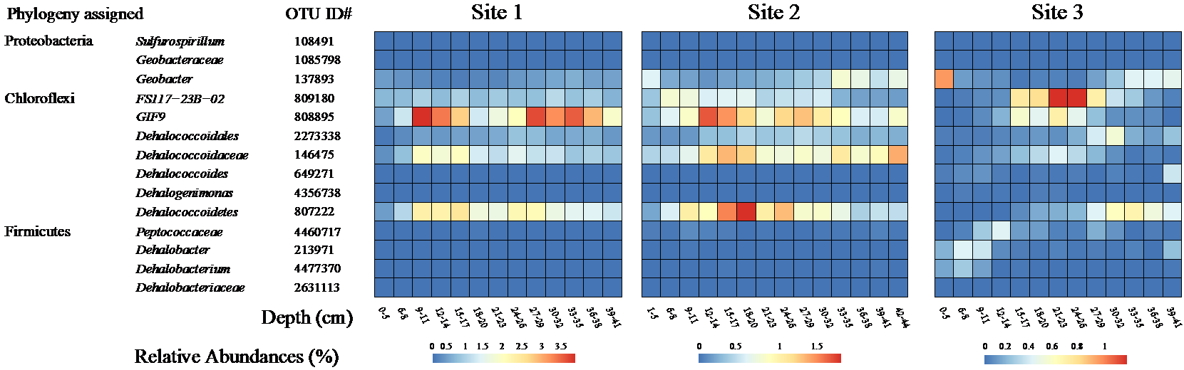 图1:沉积物钻孔中潜在脱卤功能菌的相对丰度变化