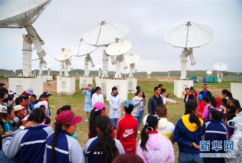6月1日,国家天文台明安图观测基地科研人员为孩子们讲解太阳射电研究常识。新华社发(杨子建 摄)
