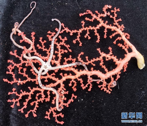 “发现”号遥控无人潜水器采集到的珊瑚(6月5日摄)。新华社记者 张旭东 摄