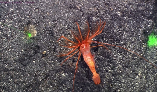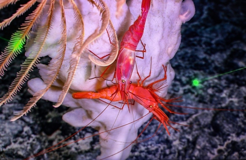 深海拍摄到的大虾背小虾“母子情深”