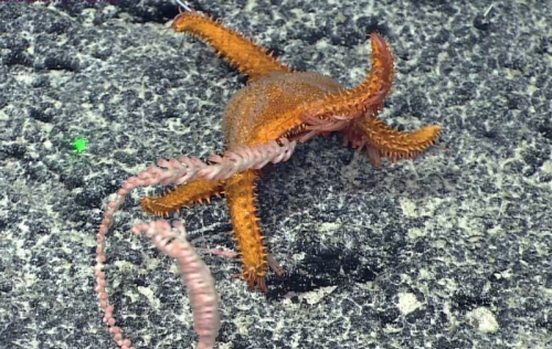 深海海星摄食柳珊瑚