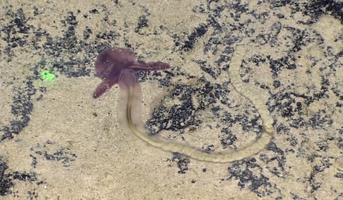 采集到的头部有两个大耳朵、身体半透明、吃了一肚子沙子的半索动物
