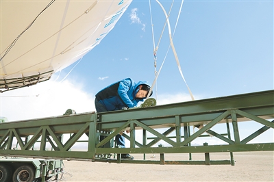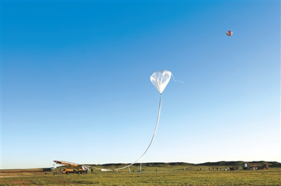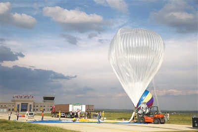 高空超压气球充气完毕,准备发放。栗颖思摄