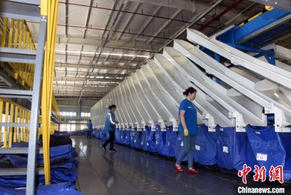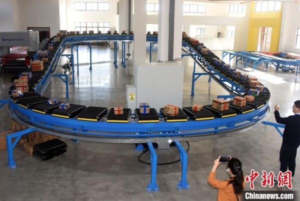 中科院微电子所孵化企业——中科微至智能制造科技江苏有限责任公司研发的智能物流系统,在一家大型快递企业开展实际应用。孙自法 摄