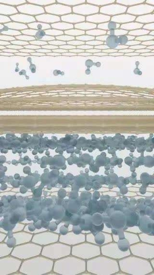 随后,吴恒安与安德烈教授课题组合作,利用氧化石墨烯制作出一种新型隔气透水材料。该材料神奇之处在于,绝大多数液体和气体都无法通过它,但水蒸气可以畅通无阻。