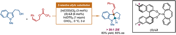 图2.铱催化吲哚衍生物的Z式保留不对称烯丙基取代反应