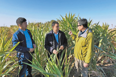 在对水文地质等条件考察后,中方开始着手进行生态修复试验。在穆伊纳克建设的盐渍土地植被恢复试验区基地,是这一阶段的重点工程。新疆生地所高级工程师赵振勇介绍说,基地面积超过100亩,种植的作物包括肉苁蓉、沙棘等经济作物和种植饲料,共20多种,既有中国常见的耐旱耐盐品种,也有在当地采集的品种。“通过这个基地的试验,我们得以筛选并繁育适宜当地种植的苗木和种子,希望充分发挥作物的经济效益,带动当地居民增收。”目前,已筛选出的3至5种耐盐耐碱植物在重度盐碱地和咸水灌溉下长势喜人,给咸海生态修复与治理带来希望。