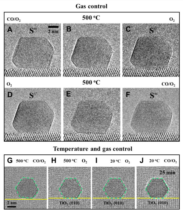基于上述理论认识,研究人员进一步提出通过改变反应环境(更换气体环境与控制温度)以精确调控界面的设计思路,并最终在原位电镜实验中实现。