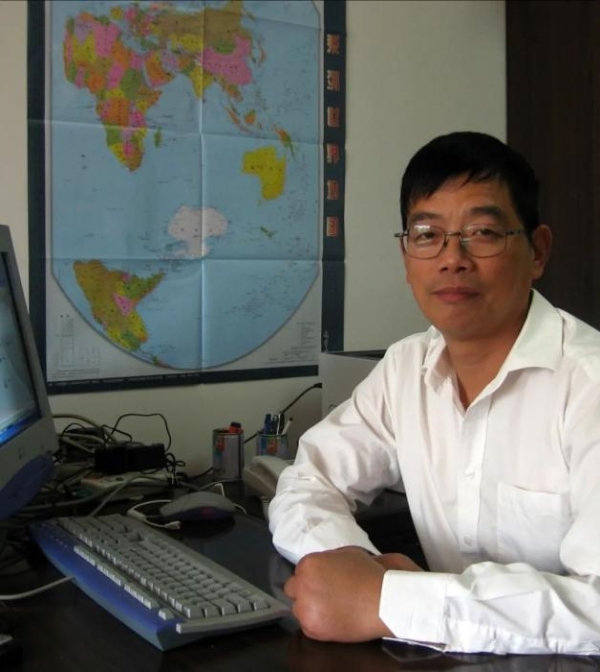中国科学院精密测量科学与技术创新研究院郝晓光研究员与他创新编制的竖版世界地图