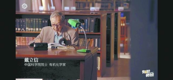 在微电影里,戴立信的角色是图书馆里一位爱与年轻人交流、喜欢提问的老人。“你们知道我们有机所一个很有名的工作叫边臂效应吗?” “要记得,做重要且实用的化学。”这是他在电影中的台词。